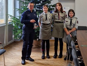 Harcerki z Betlejemskim Światłem Pokoju u pabianickich policjantów