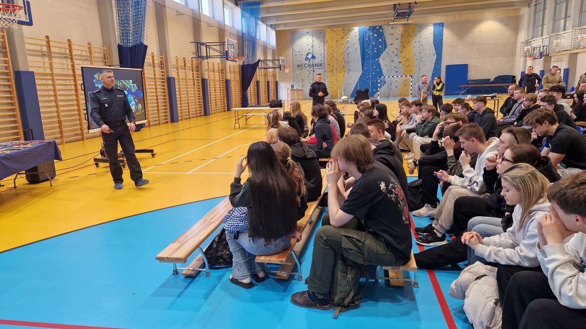 11 marca 2026 roku w Powiatowej Hali Sportowej przy Zespole Szkół Nr 1 w Pabianicach mieszczącej się na ul. Piotra Skargi 21 stróże prawa z Komendy Powiatowej Policji w Pabianicach zorganizowali spotkanie poświęcone doborowi do służby w Policji. Adresatami wydarzenia byli maturzyści z pabianickich szkół ponadpodstawowych. W przedsięwzięciu wziął udział nadkomisarz Andrzej Grzelak p.o. I Zastępcy Komendanta Powiatowego Policji w Pabianicach oraz nadkomisarz Aneta Sobieraj p.o. Naczelnika Wydziału Doboru Komendy Wojewódzkiej Policji w Łodzi.