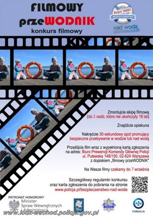 - Konkurs filmowy "Filmowy przeWODNIK" W ramach drugiej edycji ogólnopolskiej akcji informacyjno-edukacyjnej pn. „Kręci mnie bezpieczeństwo nad wodą” został ogłoszony konkurs filmowy „Filmowy przeWODNIK".