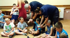 W ciągu minionych dwóch dni dzielnicowi z Pabianic oraz Konstantynowa Łódzkiego odwiedzili dzieci wypoczywające na półkoloniach i koloniach organizowanych na terenie powiatu pabianickiego. Policjanci urozmaicają im wakacyjny wypoczynek, nie zapominając przy tym o edukacji z zakresu bezpieczeństwa, w szczególności bezpieczeństwa nad wodą.