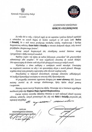 - Życzenia od Komendanta Głównego Policji z okazji Dnia Babci i Dziadka Wszystkim Babciom i Dziadkom, z okazji ich święta, życzenia spokojnych i bezpiecznych chwil, jak najdłuższego zachowania swojej aktywności oraz tego aby mądrość i doświadczenie życiowe służyły młodszym pokoleniom składa Komendant Główny Policji.