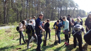 Prawie 300 młodych buków posadzili uczniowie pabianickiej ,,trójki” wraz z dzielnicowym i leśniczym w Lasku Miejskim. Wielkie sadzenie lasu obyło się w związku ze zbliżającym się Światowym Dniem Ziemi.