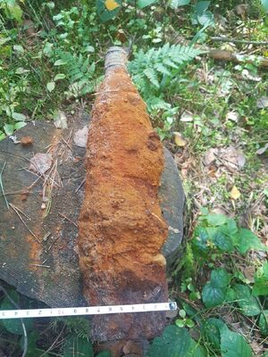Mieszkaniec Łodzi podczas grzybobrania w lesie rydzyńskim znalazł niewypał z okresu II wojny światowej. O znalezisku powiadomił pabianicką policję.